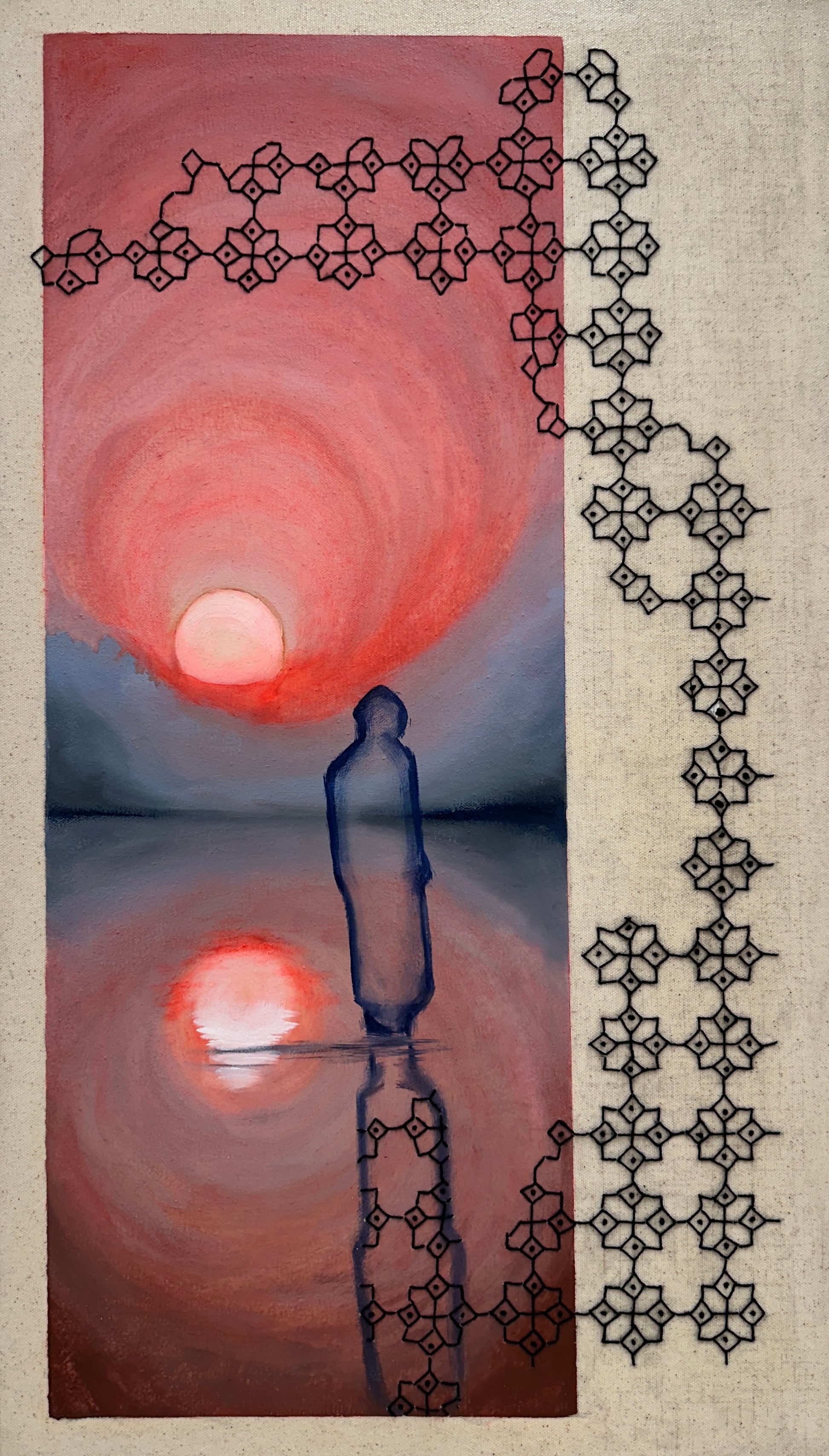 The Blue, 18"x36", oil paint and embroidery on canvas, 2025