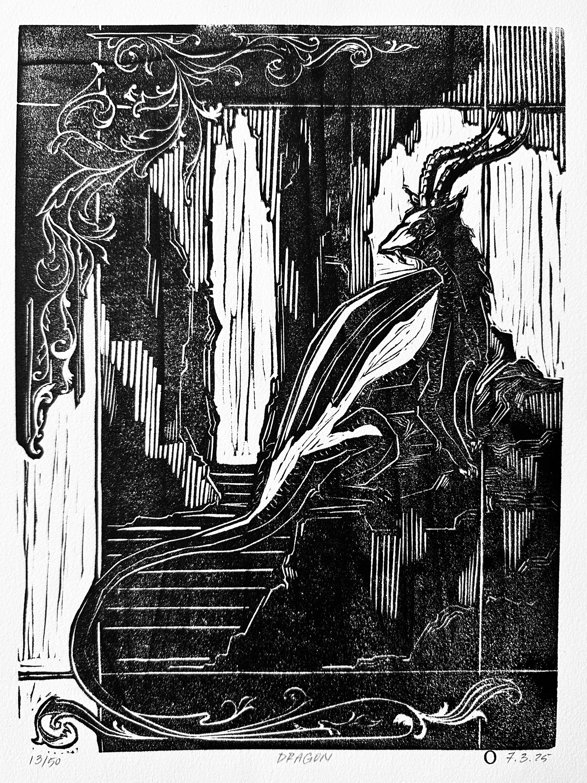 An original handmade linoleum print on handmade BFK paper